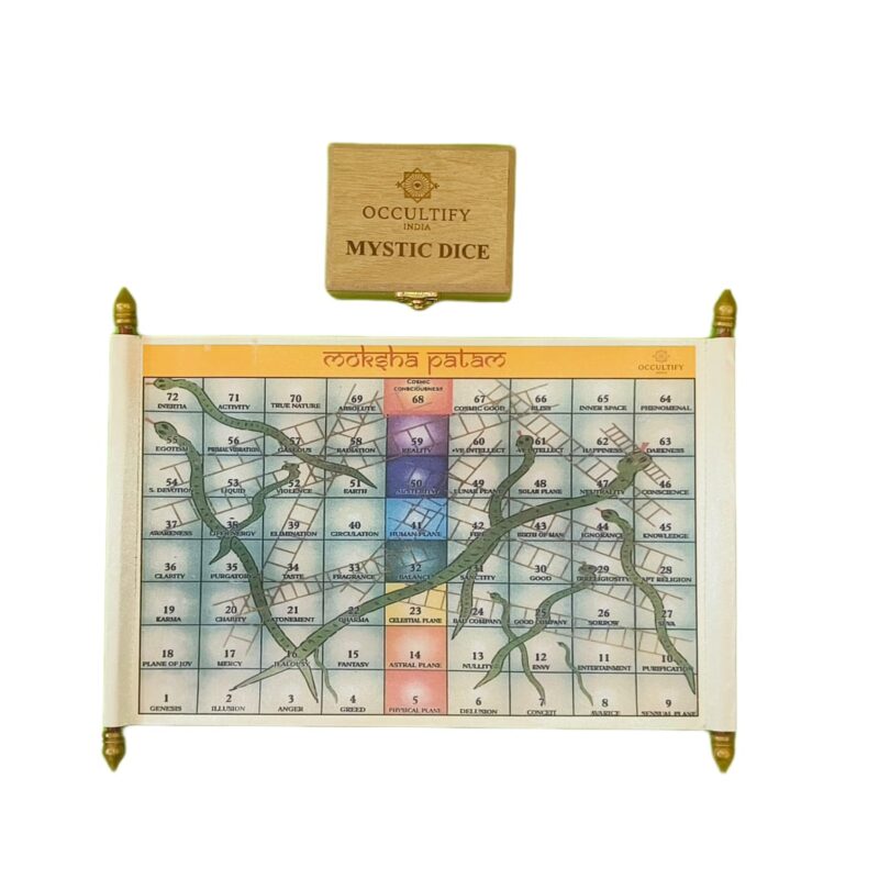 Mokshpat – Vedic Divination Tool with Sacred Board, Cowries & Wooden Dice | for Jyotish, Karma Analysis & Spiritual Insight | Mokshapatam Set by Occultify India™ (Paramapadam)